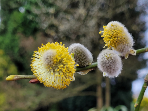 Just noticed some pussy willows whilst out for a walk in the park today. These are just by the Thrive pavilion near the bowling green. They are the male flowers on a Goat willow or Great sallow and should turn bright yellow over the coming weeks.