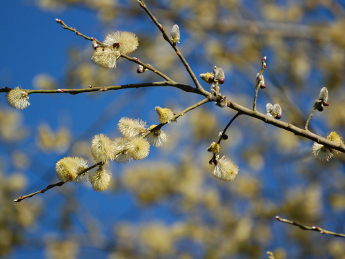 By mid March the whole tree is ablaze with mature catkins and on a glorious sunny day they are buzzing with visitors. The ground is awash with spent flowers and I don’t suppose it will be that long before this amazing display comes to an end.