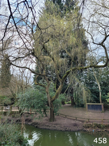 There’s a tree on the bank of the pond that is worth keeping an eye on at the moment. It grows on the tennis court side of the pond but leans over and spreads its branches out over the pond in the typical fashion of a Weeping willow (Salix babylonica). It is busily producing catkins at the moment and these are creating an ethereal yellow-green effect as light can still penetrate the leafless branches but the colour gently shows against the background of the other bare trees.
