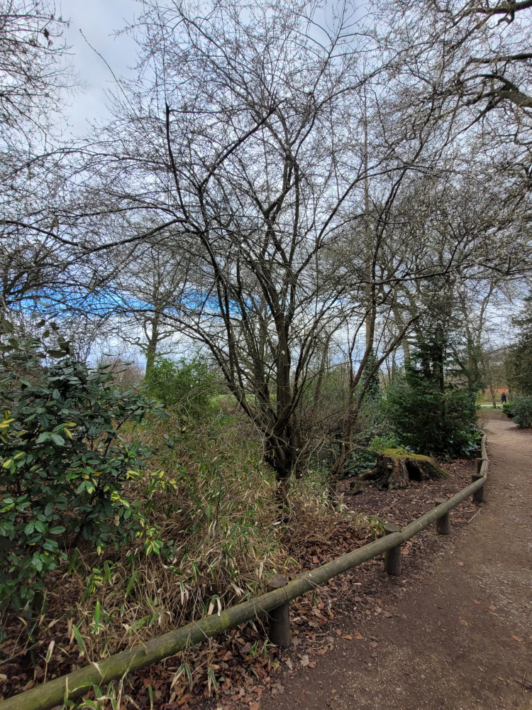 The first one to mention is the Campbell’s magnolia, opposite the café. At this time last year, it was in full bloom and had a mass of glorious flowers. This year the flowers are still in bud and thin on the ground. It does not look like the tree is going to put on a good show this year. Some might be tempted to say it is due to the poor weather we are having now, but things were decided last season and the poor show of flower buds now is probably down to the stress of last summer’s drought. Having said that, the Campbell’s magnolia is due to blossom in early March each year – all things going well – and is usually the first magnolia, in the park, to blossom. The flowering lasted until the end of the month in 2022, which is about three to four weeks from onset. The Campbell’s magnolia is suffering both a reduced number of flowers and a delay in blossoming. It is the number of flowers that were determined by last season’s conditions.