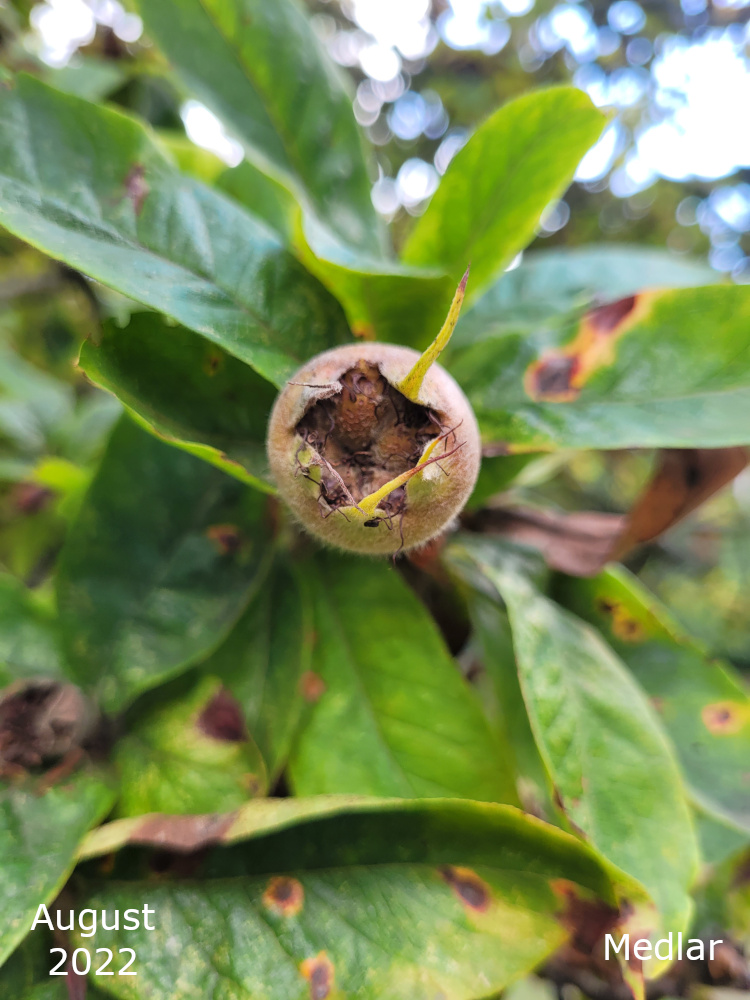 This is a medlar tree, Mespilus germanica, in the triangular area between the Thrive garden and the path going down the hill towards the railway line.