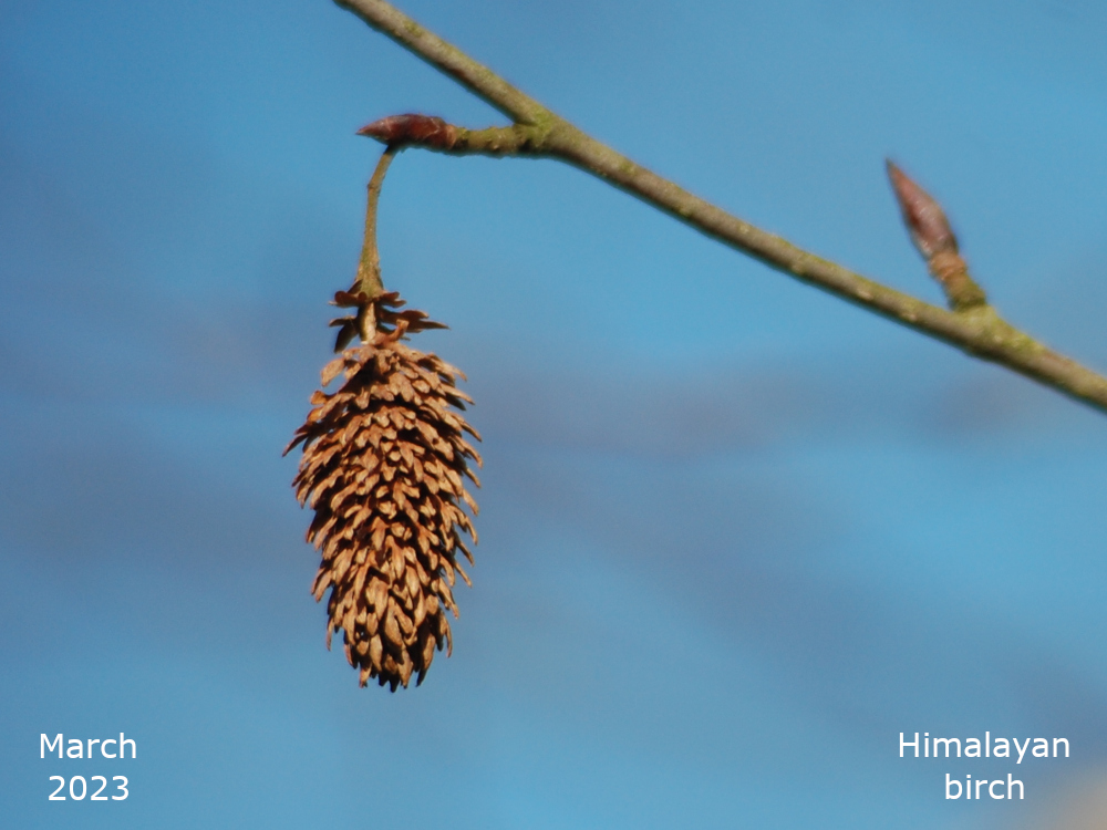 This is a small area between the Thrive garden fence and the path going down the hill towards the railway lines. All the birch trees in this area are Himalayan birches, Betula utilis.