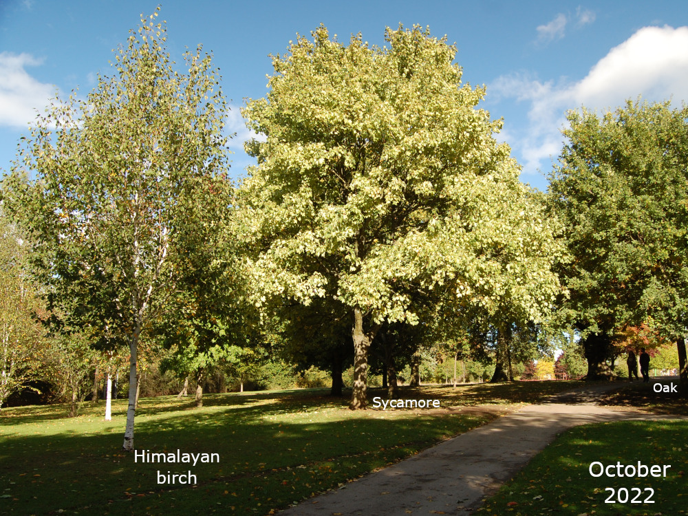 There are many Silver birches within the park but there are also Weeping birch, Himalayan birch and Black river birch.