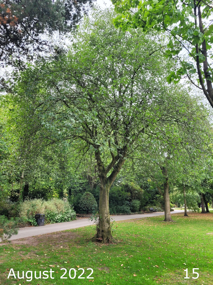 Walking away from the white house along the right hand side of the pond, just as you are coming up towards the car park end this Prunus species is on a corner of the path.
