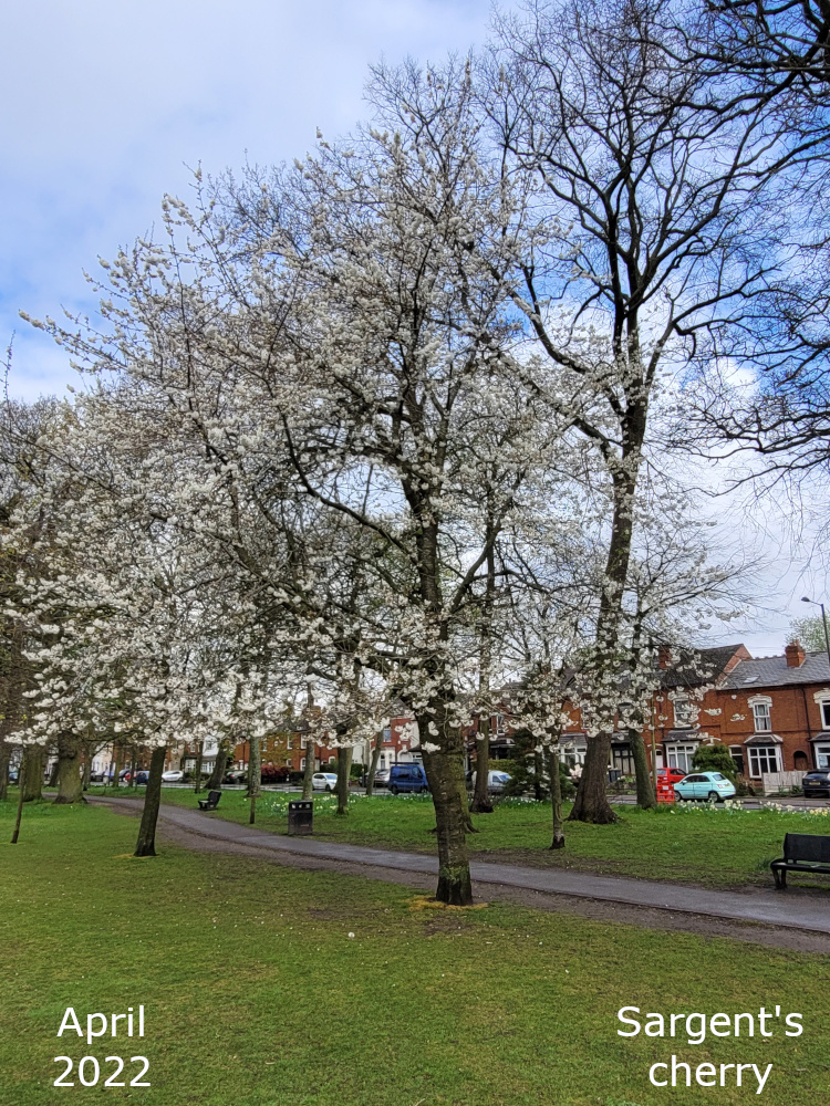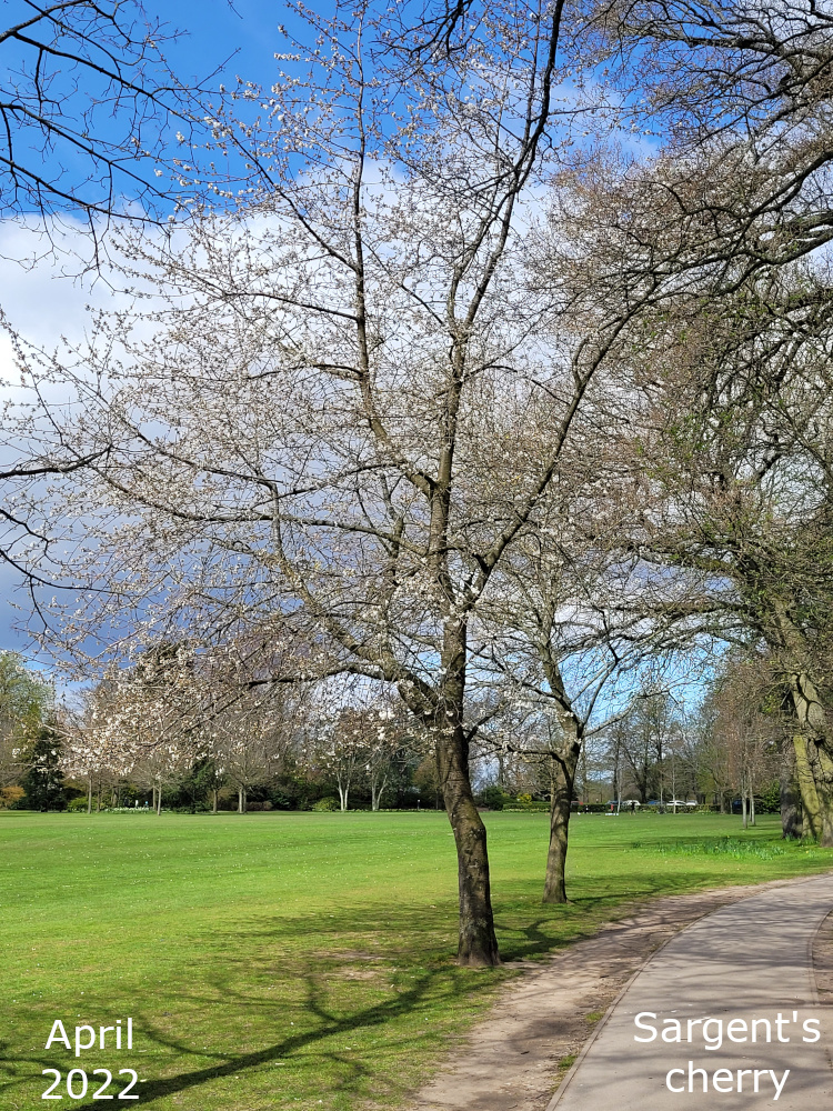 I suppose most of the cherry trees in the park are ornamental cherries. I’ve never seen any of them producing any fruit; something to watch out for. A lot of them are particular species such as Prunus kanzan or P. avium but some are simply labelled as Prunus species.
