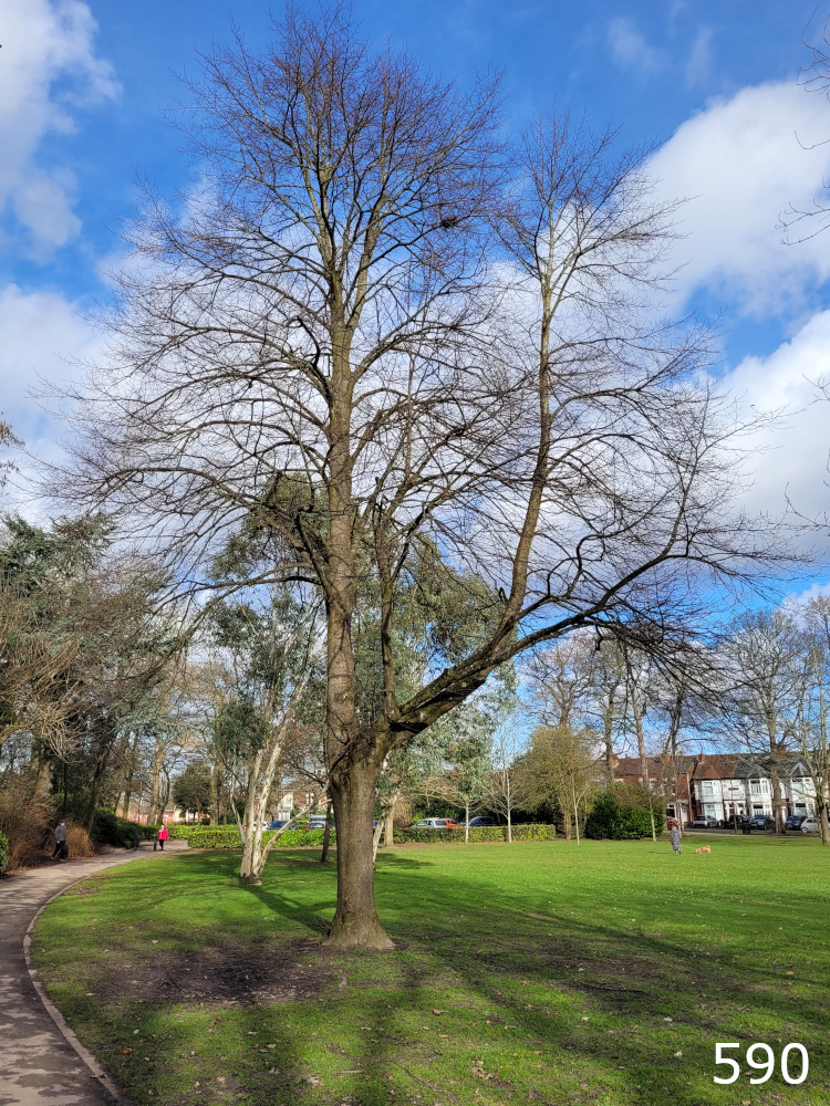 The first of these two Lime trees is unmistakeable, standing right by the entrance opposite Grange Road. The other is somewhat smaller and is a few metres down the path alongside Avenue Road.