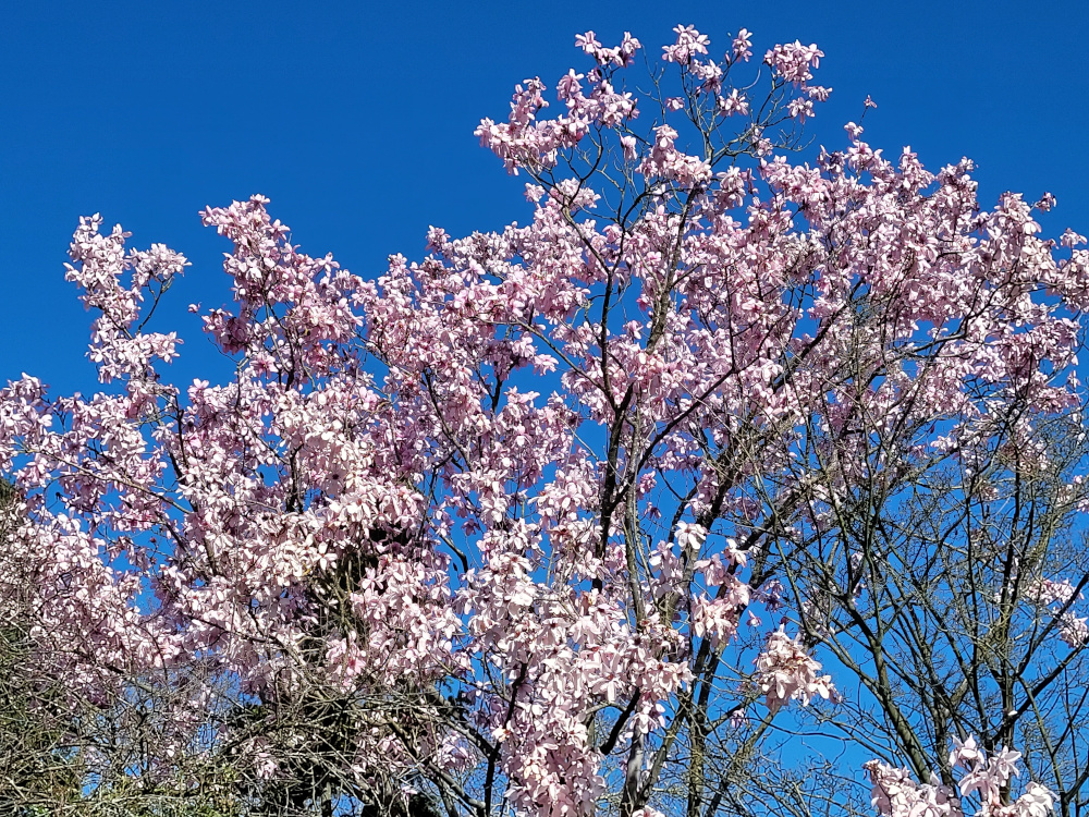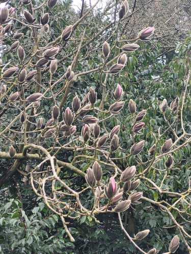 The Campbell’s magnolia flowers abundantly from late February but it does not like frost and the flowers are easily damaged. However a few days of sunshine will produce a magnificent display